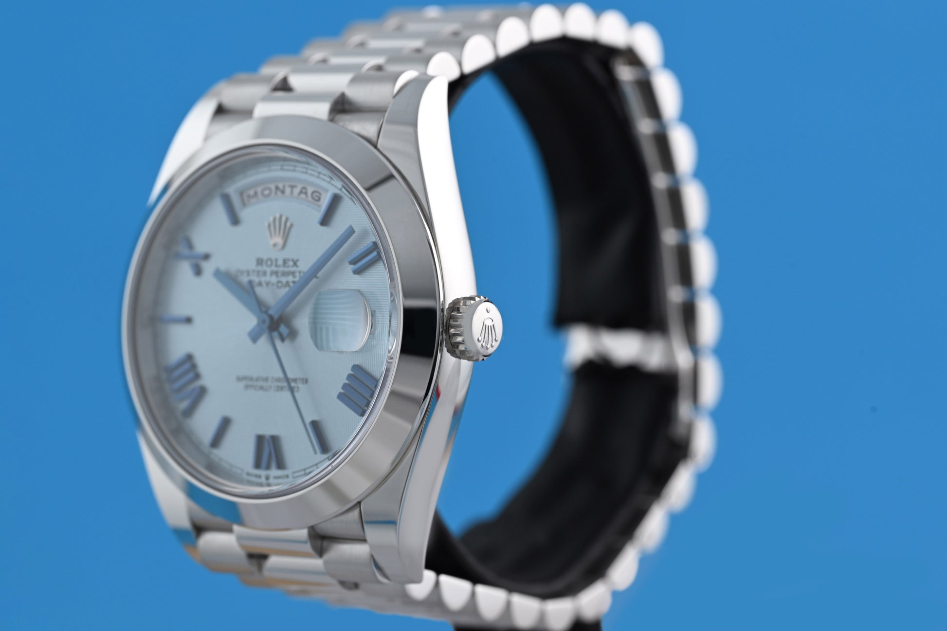 Men's wristwatch ROLEX Day Date, Ref. 228206, automatic, case and President bracelet in platinum, diameter 40 mm, excellent condition, purchase date May 2020, box & papers.