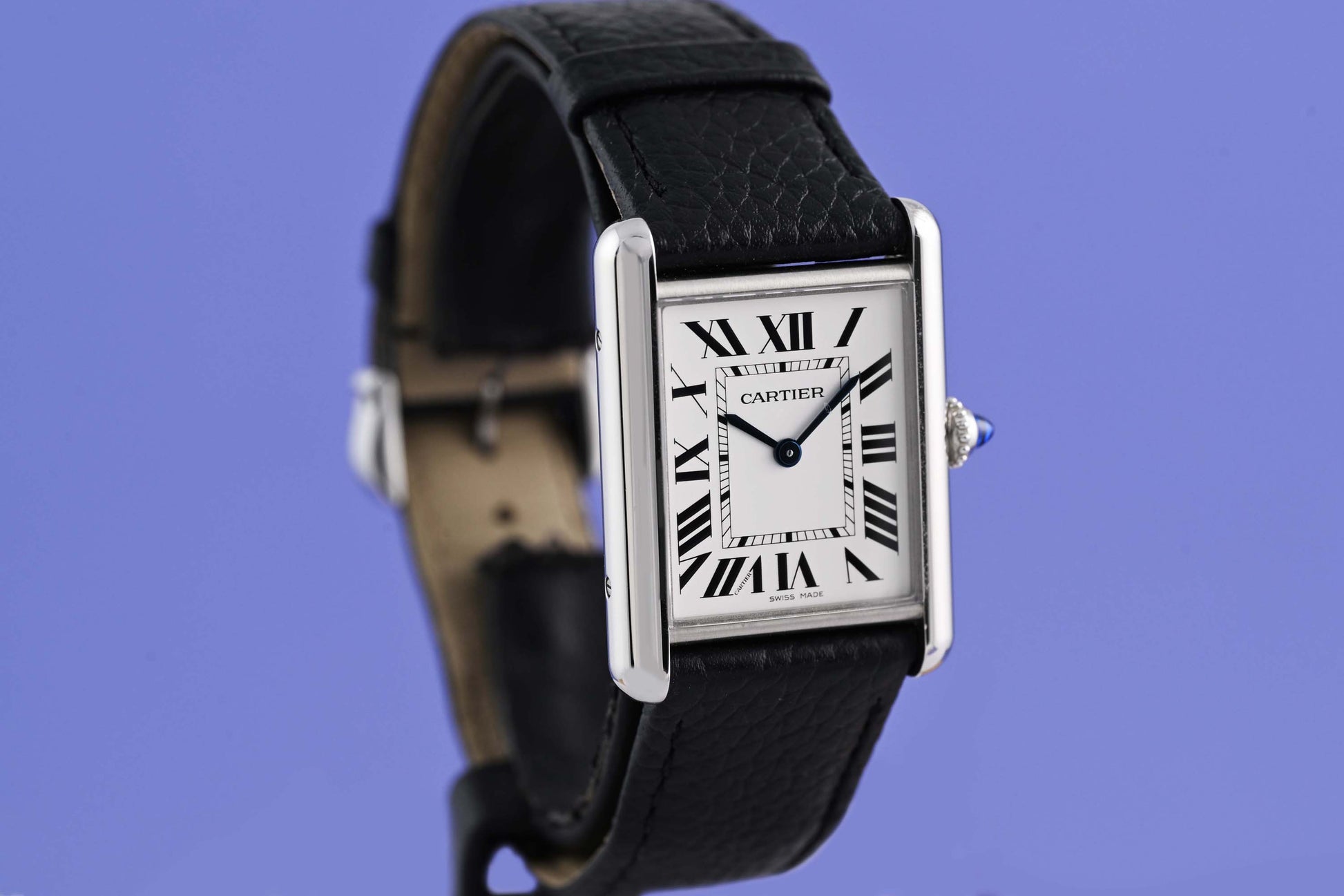 Herrenarmbanduhr CARTIER Tank Must, Quarzwerk, Ref. WSTA0041, Gehäuse in Edelstahl mit Lederband und Dornschließe, Durchmesser 33.7 x 25.5 mm, sehr schöner Zustand, Kaufdatum Juni 2024, Box & Papiere.