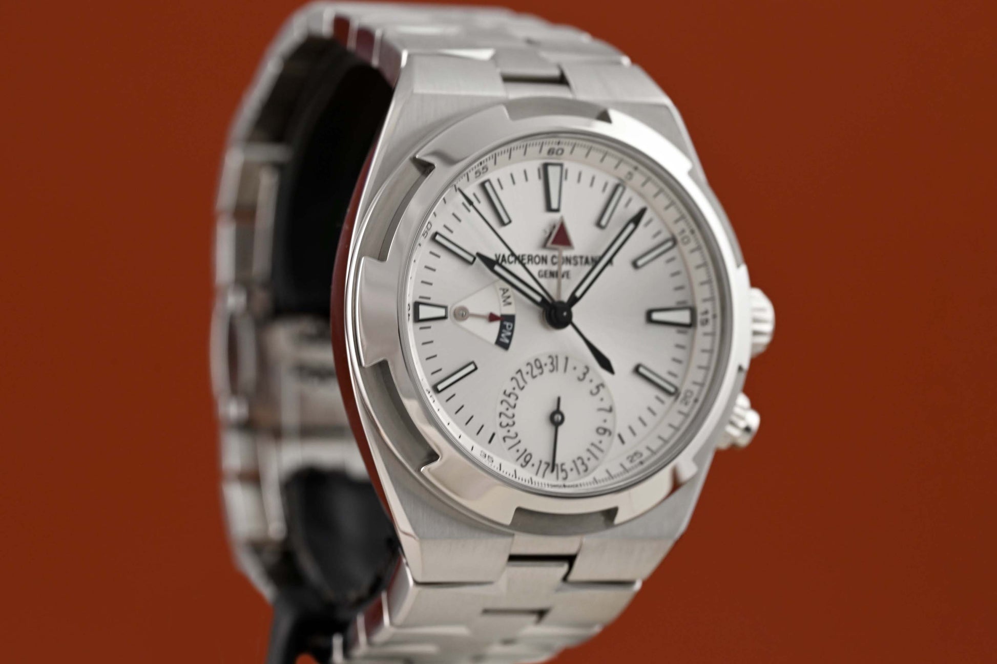 Herrenarmbanduhr VACHERON CONSTANTIN Overseas Dual Time, Ref. 7900V/110A-B333, Automatik, Gehäuse und Gliederband in Edelstahl, zwei zusätzliche Armbänder, exzellenter Zustand, Zifferblatt silber, Kaufdatum Februar 2023, Box & Papiere.